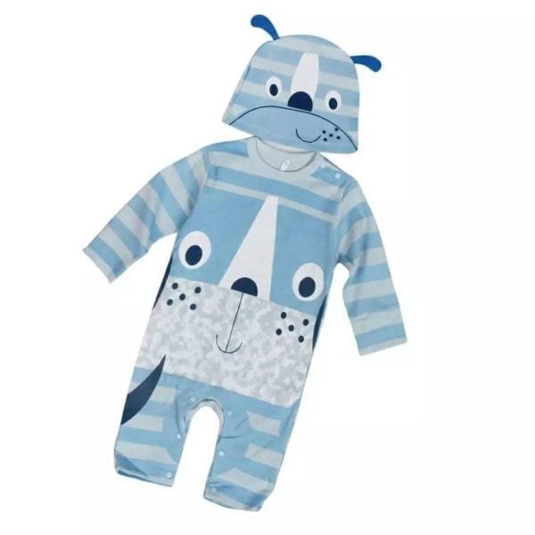 Dog Design Striped Blue Baby Romper quantity