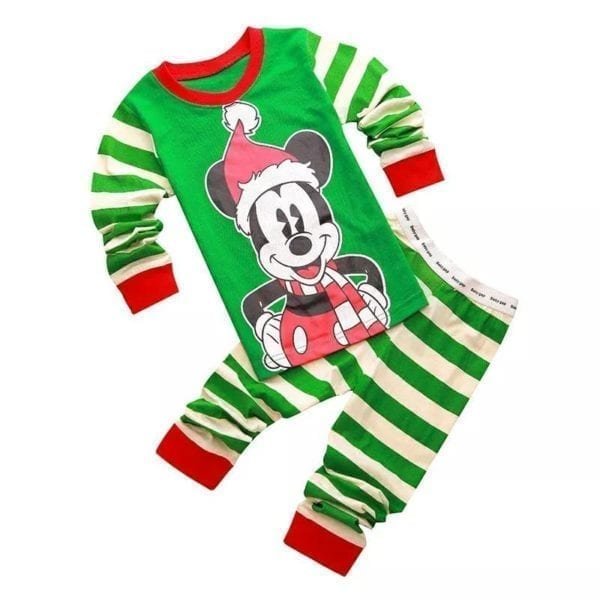 Striped Green Mickey Mouse Christmas Pajama Set